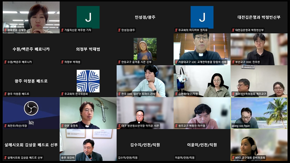 전국 14개 교구·수도회 실무 책임자 40여 명이 10일 2027 세계청년대회(WYD) 교구대회 준비위원회 제5차 회의를 온라인 화상회의에 참여하고 있다. 2027 세계청년대회(WYD) 교구대회 준비위원회(위원장 김종강 주교)는 ...
