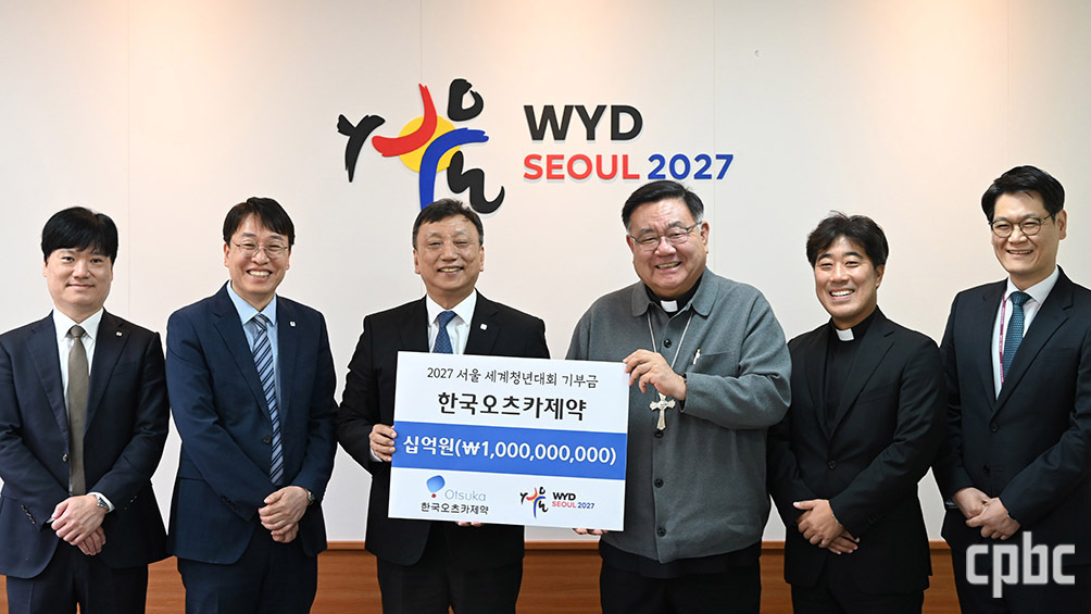 한국오츠카제약(대표이사 문성호)이 2027 서울 세계청년대회(WYD) 기부금 10억 원을 전달했다. 한국오츠카제약 문성호 대표이사와 김학주(안셀모) 상무, 홍승창 상무는 10월 22일 서울대교구청을 방문해 WYD 조직위원회 총괄 코디네이터 이경상(바오로) 주교에...
