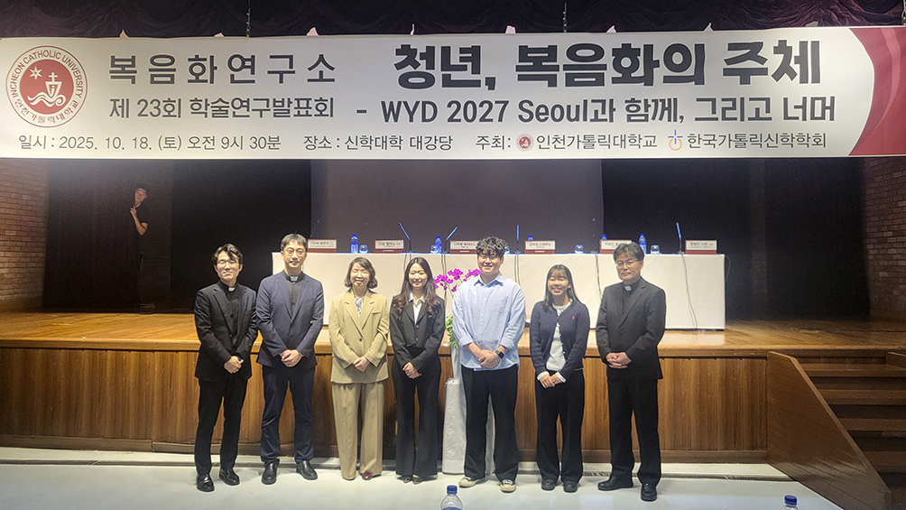 인천가톨릭대학교 복음화연구소 제23회 학술연구발표회에서 주요 참석자들이 기념 사진을 찍고 있다. 인천가톨릭대학교 복음화연구소 제공2027 서울 세계청년대회(WYD)가 일회성 국제 행사로 끝나는 것이 아닌, 청년 사목의 본질적 목표인 개별 성소를 발견하는 여정이 돼...